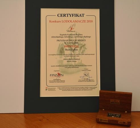 Kapituła Konkursu "Lodołamacze 2018" Regionu Dolnośląskiego, Lubuskiego, Opolskiego, Śląskiego przyznała Miastu Zabrze II miejsce w kategorii "Instytucja".
