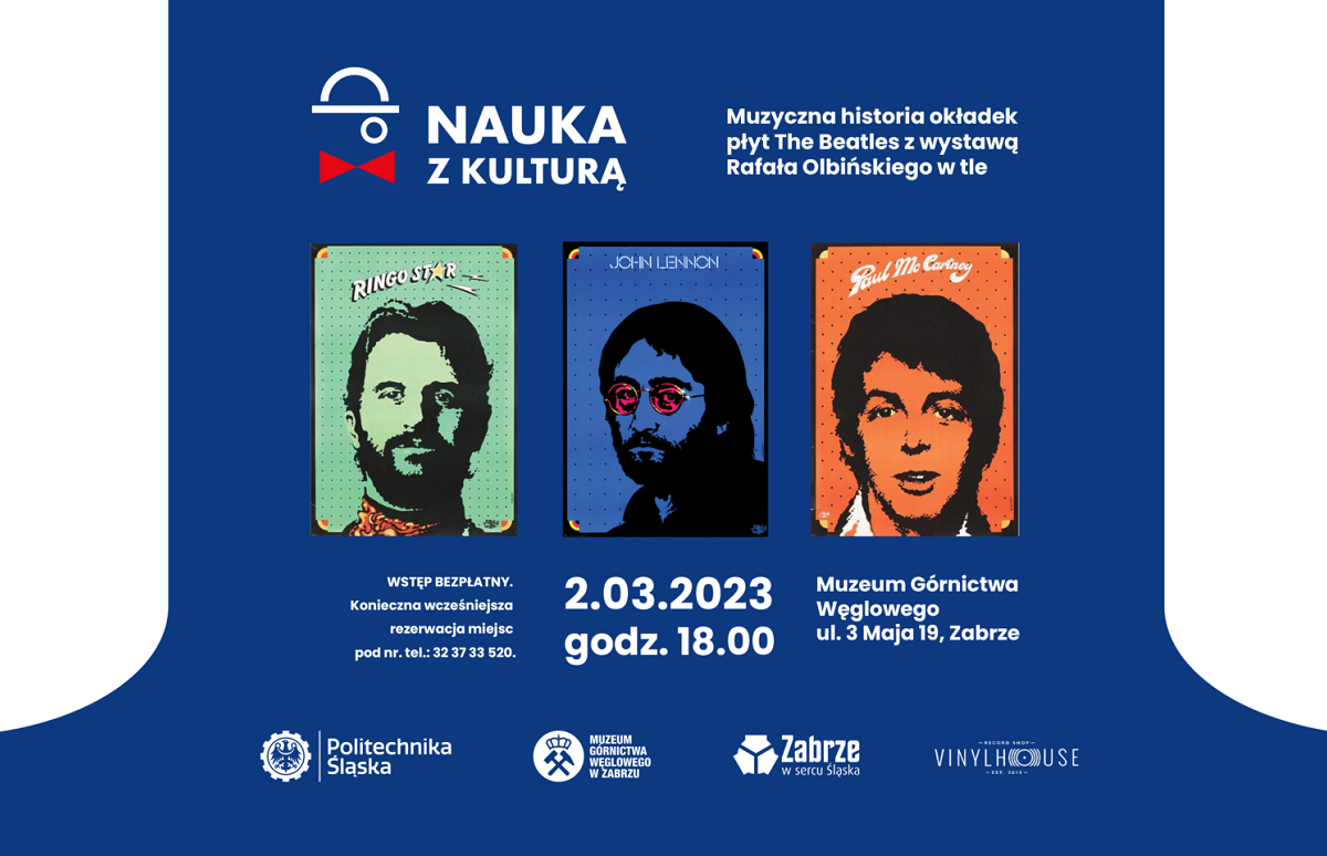 Politechnika Śląska, Miasto Zabrze oraz Muzeum Górnictwa Węglowego w Zabrzu zapraszają na słowno-muzyczną podróż w głąb okładek zespołu The Beatles. W podróży towarzyszyć nam będzie muzyka Wielkiej Czwórki odtwarzana z płyt gramofonowych z lat sześćdziesiątych. Spotkanie, które odbędzie się 2 marca w siedzibie MGW przy ul. 3 Maja 19, poprowadzi Bogusław Ziębowicz – animator muzycznej kultury winylowej na Śląsku i nie tylko.