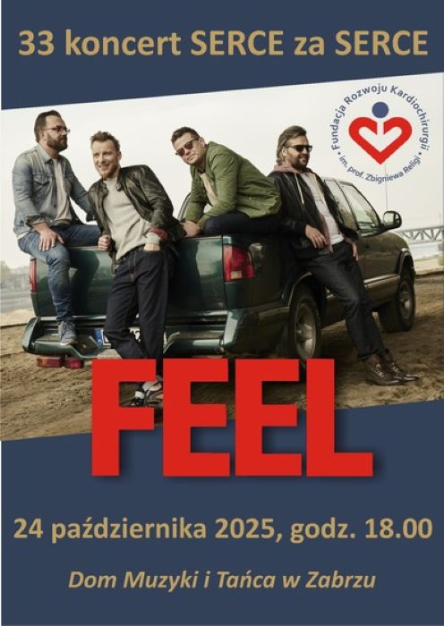 Gwiazdą tegorocznego koncertu Serce za Serce będzie zespół Feel. Feel to jeden z najbardziej rozpoznawalnych zespołów w kraju, ich przeboje to: "A gdy jest już ciemno", "Jak anioła głos", "No pokaż na co cię stać". Inne popularne utwory: "Swoje szczęście znam", "Pokonaj siebie" i "Jak na imię masz".