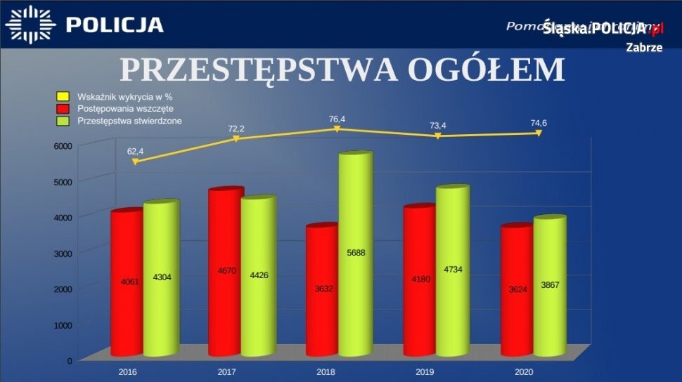 W tym roku z oczywistych względów odprawa odbywała się zdalnie, w gronie ścisłego kierownictwa i z zachowaniem reżimu sanitarnego. Uroczystą odprawę roczną zorganizował Komendant Miejski Policji w Zabrzu inspektor Dariusz Kopeć, który przedstawił sprawozdanie stanu bezpieczeństwa na terenie miasta w 2020 roku. Szef zabrzańskich policjantów podkreślił, że miniony rok pomimo nałożonych dodatkowych obowiązków przyniósł poprawę dla bezpieczeństwa mieszkańców Zabrza. Chcąc przybliżyć trud i zaangażowanie, jaki w codzienną pracę wkładają zabrzańscy mundurowi, Komendant Kopeć omówił dzień z życia policjantów naszego miasta, którzy średnio codziennie: zatrzymują dwóch sprawców przestępstw i poszukiwanych, przeprowadzają 59 interwencji, legitymują 104 osoby, ujawniają 28 wykroczeń szczególnie uciążliwych. Ponadto omówione zostały wyniki poszczególnych pionów: kryminalnego, prewencji, ruchu drogowego oraz służb logistycznych. Choć rok 2020 to rok, który zostanie zapewne zapamiętany pod hasłami walki z pandemią i nałożonych w związku z tym na policjantów dodatkowych obowiązków to policjanci bardzo dobrze wywiązali się ze swoich podstawowych zadań. Było to możliwe między innymi dzięki dobrej kooperacji policji z prokuraturą, sądem, władzami samorządowymi, urzędami oraz wieloma innymi podmiotami, co przysłużyło się do poprawy bezpieczeństwa mieszkańców Zabrza.