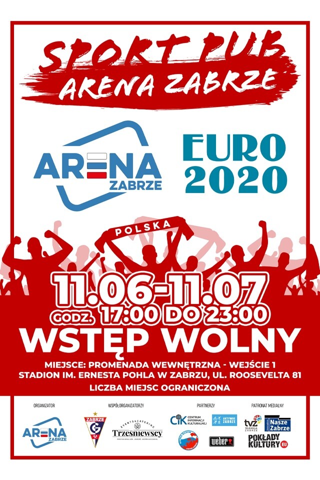 Atmosfera Euro na zabrzańskiej Arenie? Tak, to możliwe. Mecze mistrzostw będzie można oglądać na stadionie im. Ernesta Pohla. Plenerowy Sport Pub czynny będzie codziennie od 17:00 do 23:00. W niepowtarzalnej scenerii zabrzańskiego stadionu warto obejrzeć nie tylko najbardziej interesujące nas mecze reprezentacji Polski, ale również inne potyczki czempionatu Starego Kontynentu.