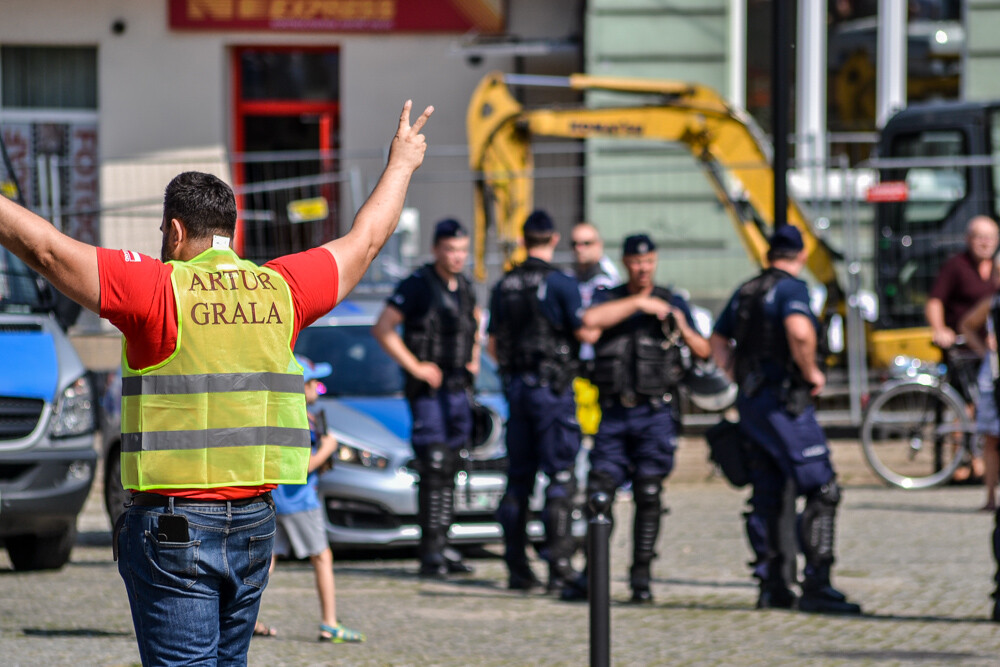 Emocje związane z tym wydarzeniem sięgnęły dziś zenitu, choć do żadnej parady de facto nie doszło. Artur Grala - organizator przedsięwzięcia - wziął w niej udział sam. Jak twierdził, ze względów bezpieczeństwa. Przeciwników marszu przyszło ponad dwustu, a teren zabezpieczało kilkudziesięciu funkcjonariuszy, zarówno umundurowanych, jak i w cywilu.