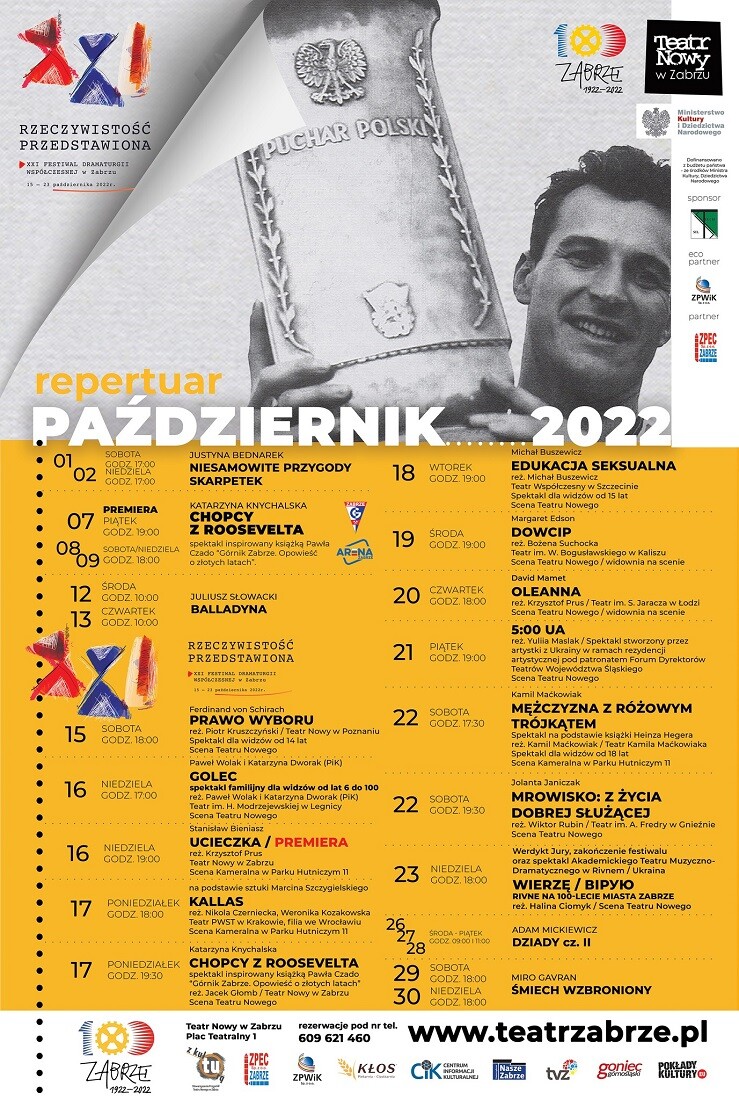 15 października, spektaklem pt. „Prawo wyboru” w wykonaniu Teatru Nowego w Poznaniu, rozpocznie się XXI edycja Festiwalu Dramaturgii Współczesnej „Rzeczywistość przedstawiona”. Dwanaście spektakli, na które składają się najbardziej znaczące inscenizacje dramatu polskiego i obcego, w wykonaniu najlepszych zespołów teatralnych z całej Polski, imprezy towarzyszące – w tym dyskusje z twórcami spektakli czy czytanie dramatów w wykonaniu młodzieżowych grup teatralnych – to wszystko czeka na miłośników teatru w ramach XXI edycji Festiwalu.