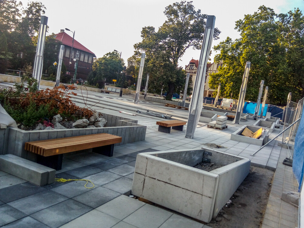 Sporo betonowej szarości, jak wcześniej, ale dodano więcej zieleńców. Jest tez podświetlana fontanna i zapowiada się, że zostaną dostawione nowe ławki. Całość będzie więc wyglądać nieco inaczej niż na przedstawionych wcześniej wizualizacjach, ale miejmy nadzieję, że wykonawca nie zostawi w centrum miasta architektonicznego potworka, czego obawia się część komentujących.