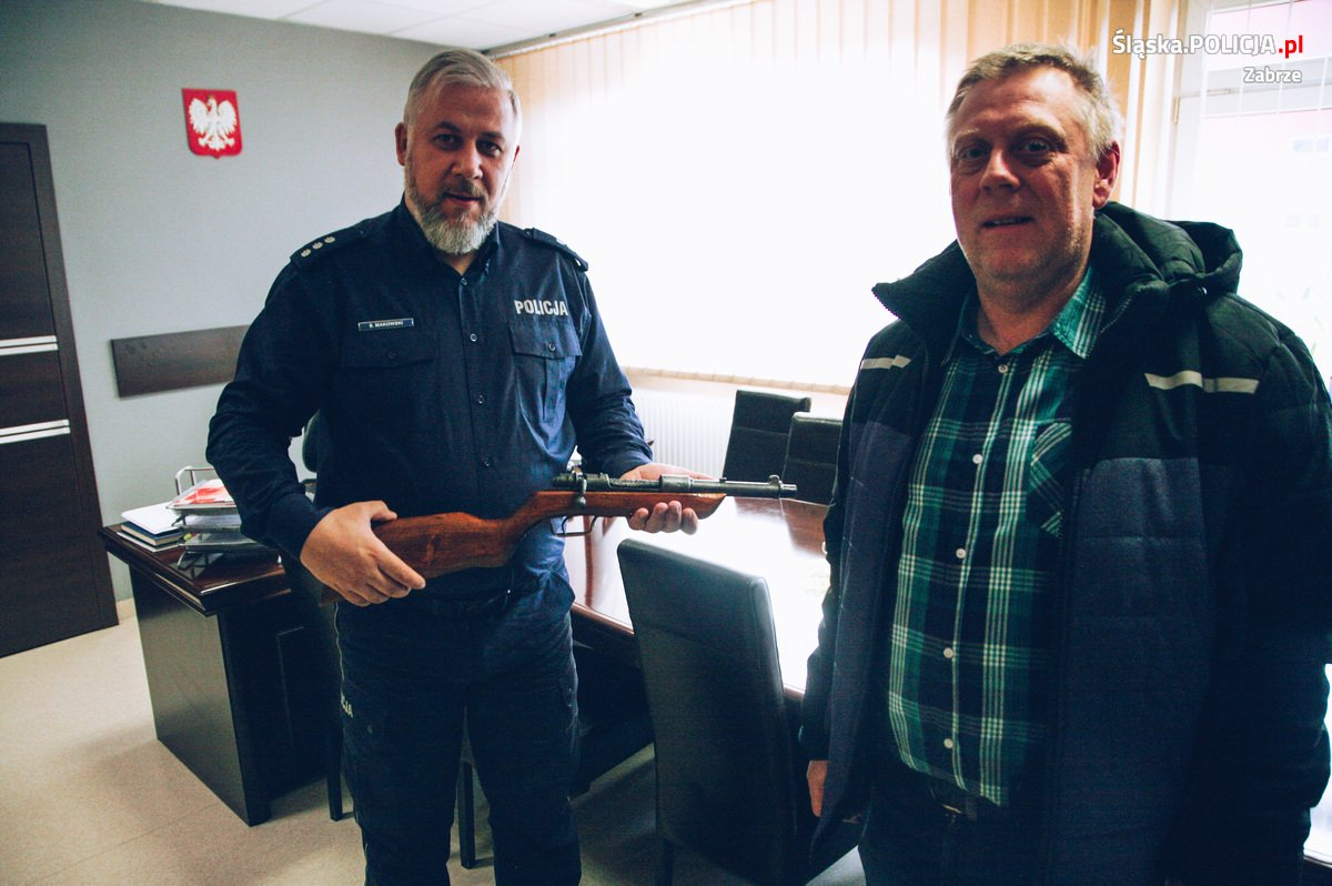 Wtedy to policjanci otrzymali informację, że podczas opróżniania jednego z mieszkań na terenie Zabrza znaleziono bron. Obecni na miejscu mundurowi potwierdzili zgłoszenie. Dokładnego pochodzenia przedmiotu nie ustalono. Historyczna pamiątka została zabezpieczona i wszczęto postępowanie prokuratorskie, podczas którego policjanci ustalili, że znaleziona broń to karabinek kalibru 7,92 mm typu Mauser wz. 98 numer 244, produkcji niemieckiej z 1920 roku. Ta jednostka broni stanowi wartościowy eksponat dlatego po zakończeniu postępowania podjęto decyzje o przekazaniu broni do Muzeum w Tarnowskich Górach.