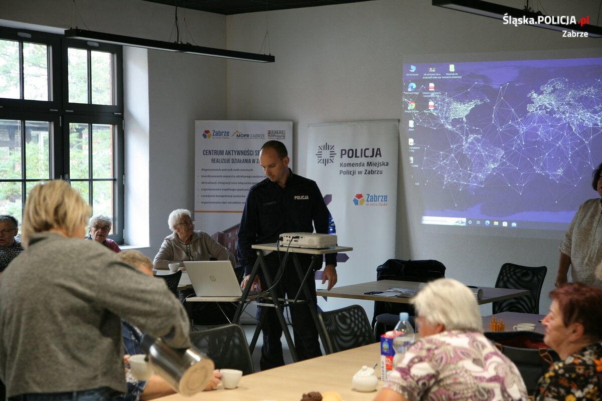 Metody i techniki oszustw stosowane przez przestępców wyłudzających pieniądze od osób starszych były głównym tematem prelekcji jaką w ramach Programu Aktywności Senioralnej w Centrum Usług Społecznych przy ulicy Stalmacha 7 przeprowadzili policjanci z zabrzańskiej komendy. Oszuści nie ustają w próbach wzbogacenia się kosztem seniorów. Jednak ofiarą tego typu przestępstw może paść tak naprawdę każdy – niezależnie od wieku.