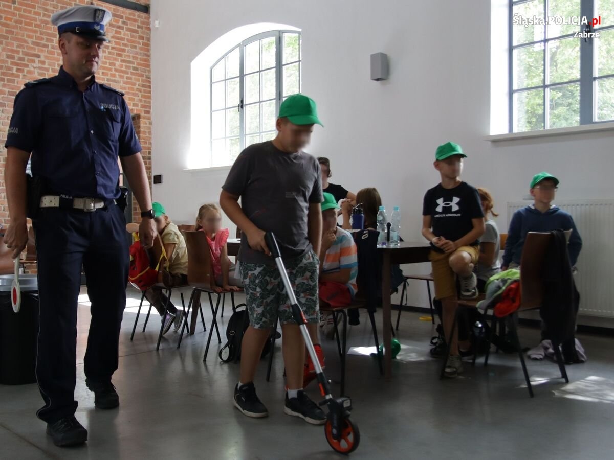 W poniedziałek 8 sierpnia policyjny profilaktyk oraz policjanci z Wydziału Ruchu Drogowego z zabrzańskiej Komendy, spotkali się z uczestnikami półkolonii. Zajęcia odbyły się na terenie Łaźni Łańcuszkowej w Zabrzu, a tematem była służba w Policji. W trakcie zajęć rozmawiano z uczestnikami o charakterystyce zawodu Policjanta.