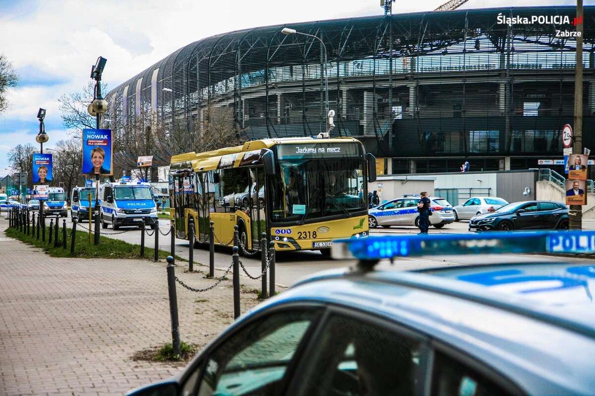 Zabrzańscy policjanci wspierani przez policjantów z innych jednostek zabezpieczali wyjazd kibiców na mecz do Chorzowa. Na terenie Zabrza zabezpieczenie przejazdu obyło się bez zakłóceń porządku, a kibice stosowali się do poleceń policjantów.