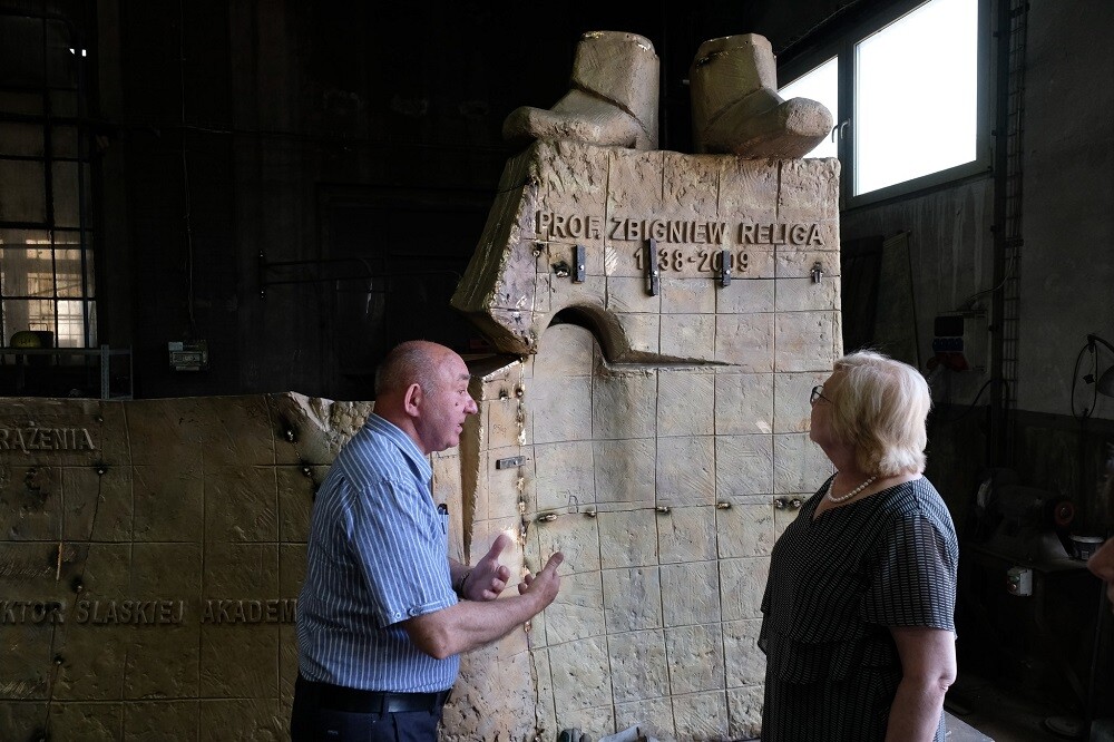 Prace nad pomnikiem Zbigniewa Religi powoli dobiegają końca. Wczoraj (25 lipca) prezydent Zabrza wraz z delegacją odwiedziła autora pomnika, którym jest prof. Krzysztof Nitsch, i sprawdziła postęp prac.