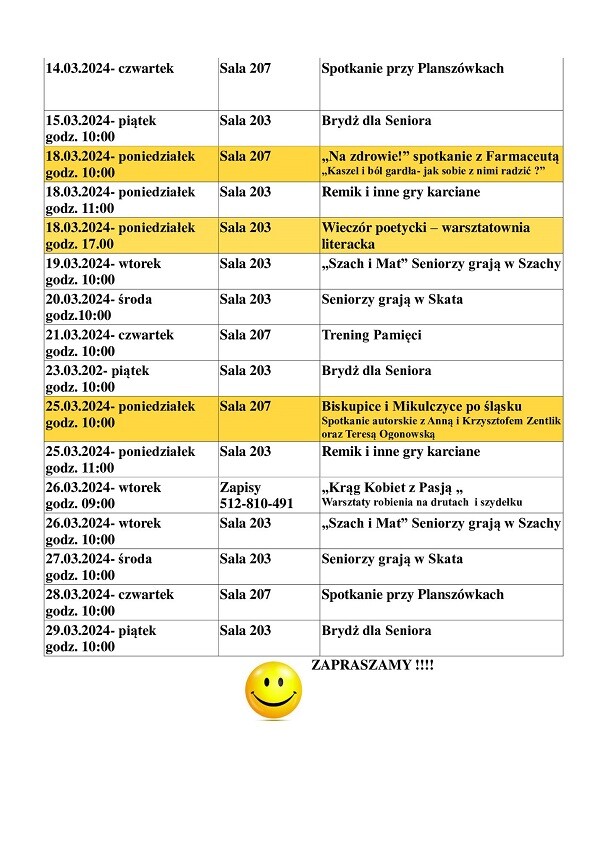 W drugiej połowie miesiąca na seniorów będą czekały takie wydarzenia jak: