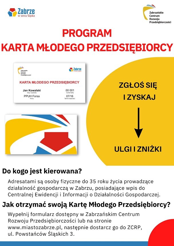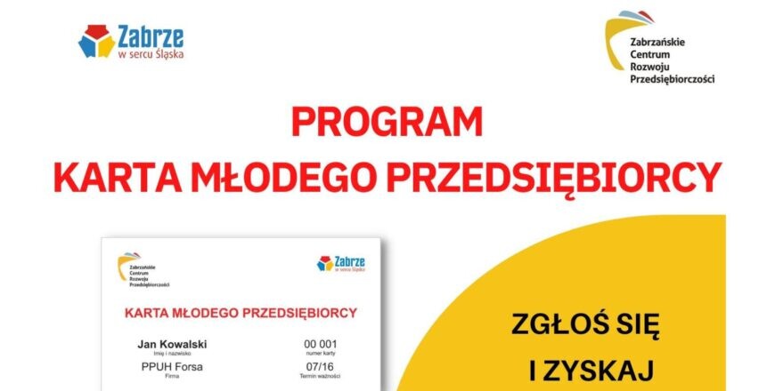 Zabrzańskie Centrum Rozwoju Przedsiębiorczości w Zabrzu prowadzi program pn. „Karta Młodego Przedsiębiorcy” – dedykowany młodym zabrzanom, którzy prowadzą swoją działalność gospodarczą. Posiadacze kart mogą korzystać z szeregu zniżek i ulg.