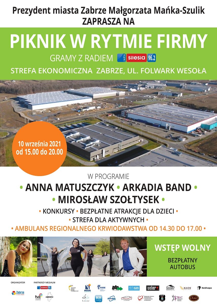 10 września, w godzinach 15:00-20:00, zapraszamy na IX edycję Pikniku w Rytmie Firmy. Impreza odbędzie się w Zabrzu przy ul. Folwark Wesoła przy Pomniku na terenie Katowickiej Specjalnej Strefy Ekonomicznej. Piknik w Rytmie Firmy jest imprezą wystawienniczo-handlową organizowaną przez Miasto Zabrze, skierowaną do przedsiębiorców reprezentujących różne branże.