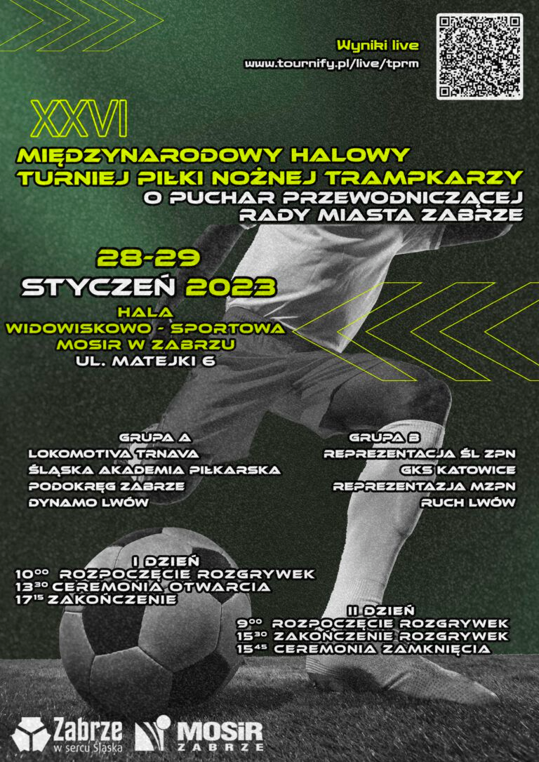 W najbliższy weekend w naszym mieście rozpocznie się XXVI Międzynarodowy Halowy Turniej Piłki Nożnej Trampkarzy o Puchar Przewodniczącej Rady Miasta Zabrze. Dwudniowa impreza odbędzie się w hali Widowiskowo Sportowej MOSIR, przy ul. Matejki 6 w Zabrzu. W turnieju wezmą udział zawodnicy urodzeni w 2010 roku i młodsi.