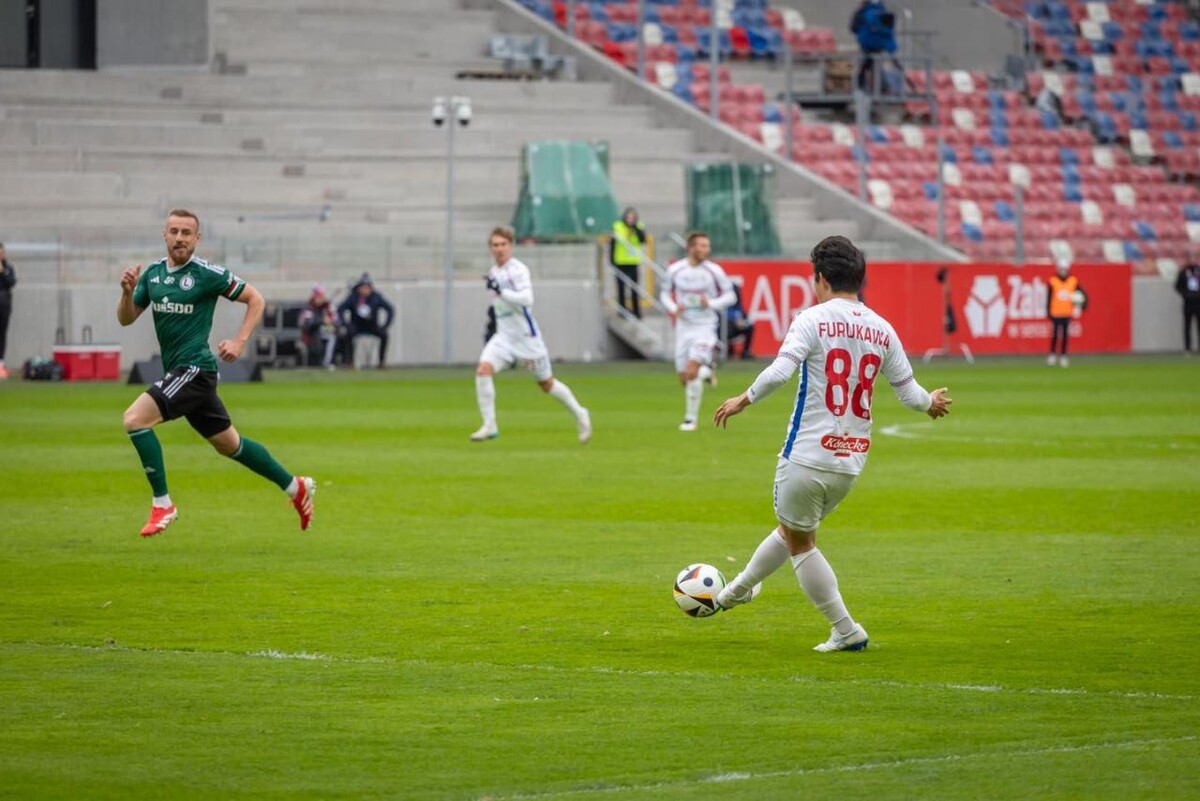 Dobrze rozpoczęliśmy to spotkanie, bo już w 2. minucie gry na uderzenie zza pola karnego zdecydował się Taofeek Ismaheel. Jednak za lekko by zagrozić Kacprowi Tobiaszowi. W 8. minucie gry wszystko wyszło nam perfekcyjnie. Na lewej stronie boiska piłkarzy Legii jak tyczki minął Yosuke Furukawa i dograł do znajdującego się polu karnym Ismaheela. Ten przyjął sobie piłkę i uderzeniem nie dał szans bramkarzowi gości na interwencję.