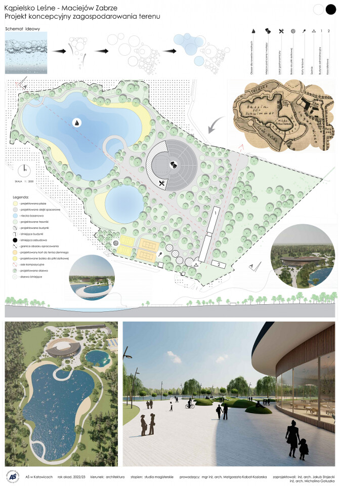 Konkurs polegał na opracowaniu projektów koncepcyjnych zagospodarowania terenów Kąpieliska Leśnego w Zabrzu przez studentów drugiego stopnia Wydziału Architektury Akademii Śląskiej.