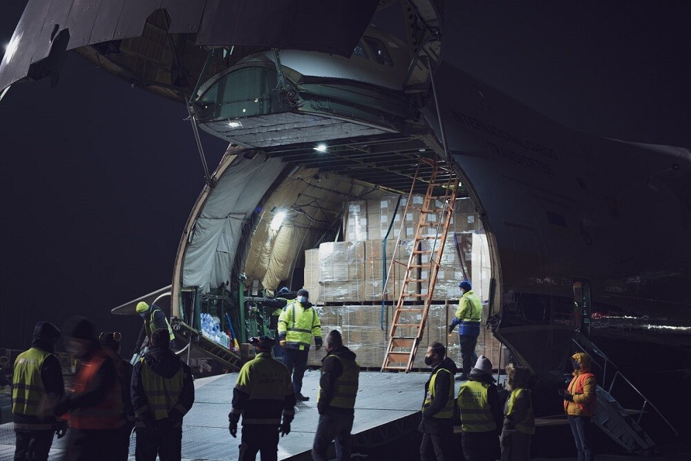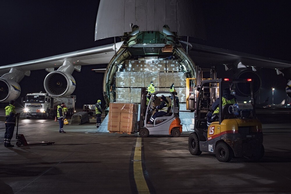 Na pokładzie An-124, na zlecenie zabrzańskiej firmy ZARYS, przyleciało około 700 metrów sześciennych (ok. 116 ton) sprzętu medycznego, to jest: kombinezony ochronne, maski FFP3 o właściwościach antywirusowych i antybakteryjnych, maski tlenowe, fartuchy chirurgiczne, a także pulsoksymetry i termometry bezdotykowe.