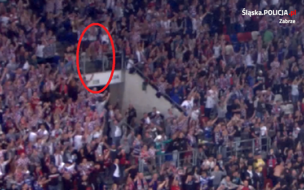 Do zdarzenia doszło podczas meczu piłki nożnej pierwszej rundy eliminacji do Ligi Europy, gdzie Górnik Zabrze podejmował mołdawską drużynę Zarea Bielce. Z policyjnych ustaleń wynika, że do upadku z wysokości ok 3,5 m do przejścia między trybunami doszło w 89 minucie gry. 26-letni kibic zabrzańskiej drużyny z urazem głowy i twarzy został przetransportowany do szpitala, gdzie przeszedł operację. Rannemu pobrano również krew do badań. Okazało się, że mężczyzna był nietrzeźwy. Badanie wskazało, że miał w organizmie 2,5 promila alkoholu. Czynności w tej sprawie trwają.