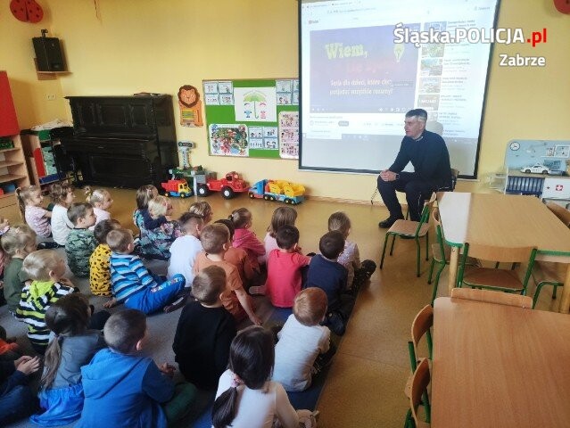 W trakcie spotkania dzieci porozmawiały z mundurowym o zasadach bezpieczeństwa. Szczególnie zwrócono uwagę na zachowanie dzieci w kontakcie z osobami obcymi, a jako przykład osoby godnej zaufanie wskazano Policjanta. Poruszono też temat bezpiecznego poruszania się na ulicy oraz zachowania wobec zwierzą. W spotkaniu wzięło udział 130 dzieci. W trakcie spotkania przedszkolaki mogły zadawać pytania i zapoznać się z pracą policjanta. Dzięki tego typu spotkaniom, które na co dzień realizują dzielnicowi, świadomość zasad bezpiecznego zachowania rośnie wśród najmłodszego pokolenia. W przyszłości pozwoli to uniknąć nieprzyjemnych zdarzeń.