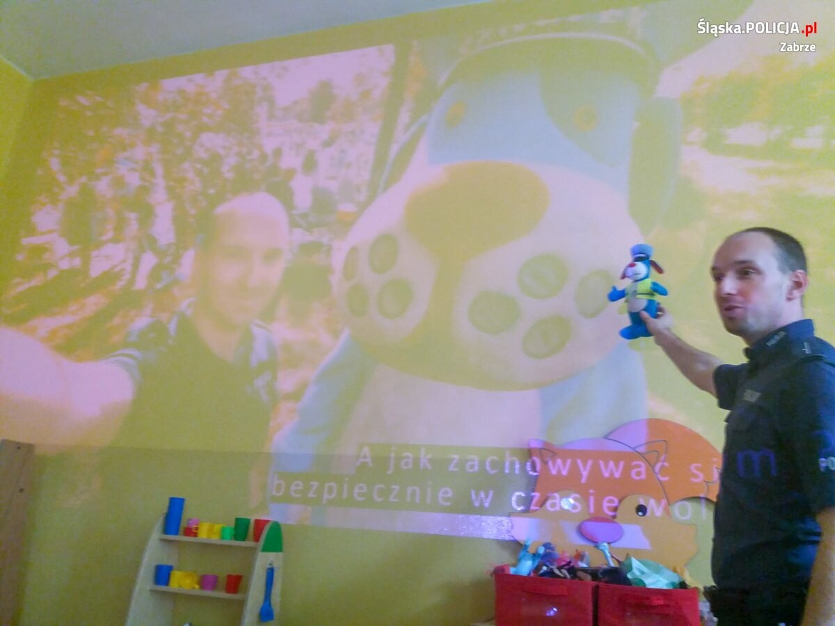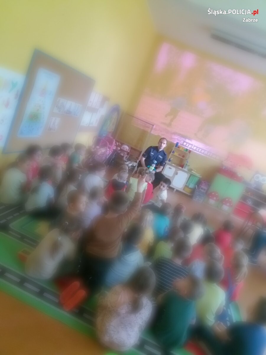 Profilaktyk z zabrzańskiej komendy odwiedził Przedszkole nr 3, gdzie przeprowadził z dziećmi pogadankę na temat bezpieczeństwa. W trakcie zajęć dzieci mogły zapoznać się z pracą mundurowych i zadawać pytania na, które policjanci chętnie odpowiadali.