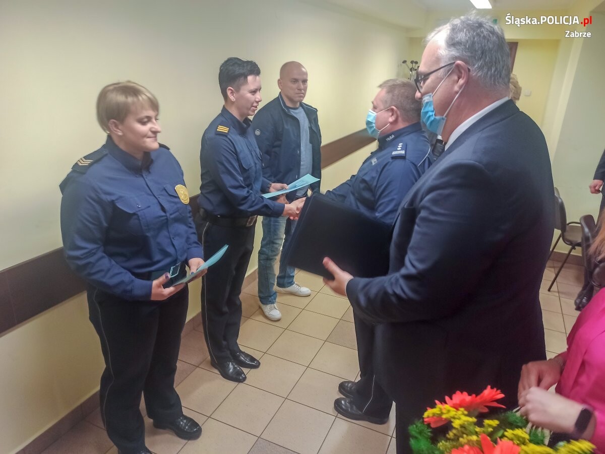 W krótkich przemowach Komendant zabrzańskiej Policji oraz Pan Wiceprezydent podziękowali za czujność, zaangażowanie i odwagę. Podkreślono, że taka postawa jest wyjątkowa i godna naśladowania. W trakcie odprawy wręczono również rozkazy personalne z awansami na wyższe stanowisko służbowe. Awansowani policji to: Komendant Komisariatu II Policji w Zabrzu kom. Sebastian Makowski, Zastępca Naczelnika Wydziału Kryminalnego Komisariatu II Policji w Zabrzu st. asp. Daniel Wojczyński, Naczelnik Wydziału Kryminalnego Komendy Miejskiej Policji w Zabrzu kom. Seweryn Kolanek, Zastępca Naczelnika Wydziału Kryminalnego Komendy Miejskiej Policji w Zabrzu asp. szt. Mateusz Papieraniak, Naczelnik Wydziału dw. z Przestępczością Gospodarczą Komendy Miejskiej Policji w Zabrzu podkom. Łukasz Zwierzyński.