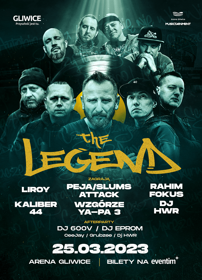 Po wielu latach ponownie będziemy mogli usłyszeć na żywo kultowego Scyzoryka w wykonaniu Liroya i Wzgórza YA-PA 3! Będzie to z niesamowity moment festiwalu, który pozwoli cofnąć się do wielu wspomnień. Gliwice tego dnia będą bardzo głośne, a koncerty z The Legend Festiwal będziemy jeszcze długo wspominać. W końcu festiwal będzie świadkiem wielu historycznych wydarzeń, jak pierwszy wspólny występ wspomnianego Liroy`a z Peją. Tak, to w Gliwicach nastąpi ten spektakularny moment występu, który zasłynął najgłośniejszym diss`em lat 90-tych...