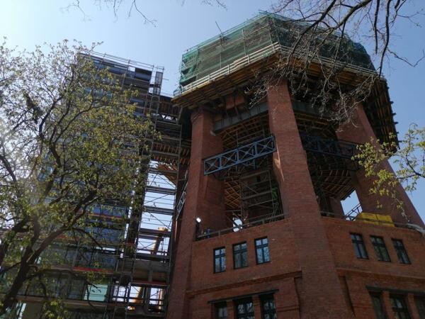 Nieprzerwanie realizowane są roboty związane z remontem budynku wieży ciśnień przy ul. Zamoyskiego w Zabrzu.
