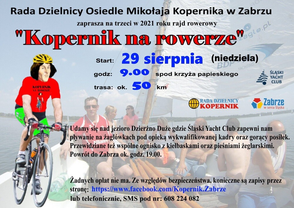 Rada Dzielnicy Osiedle Mikołaja Kopernika w Zabrzu zaprasza wszystkich chętnych na rodzinny rajd rowerowy “Kopernik na rowerze”, który odbędzie się w niedzielę 29 sierpnia.