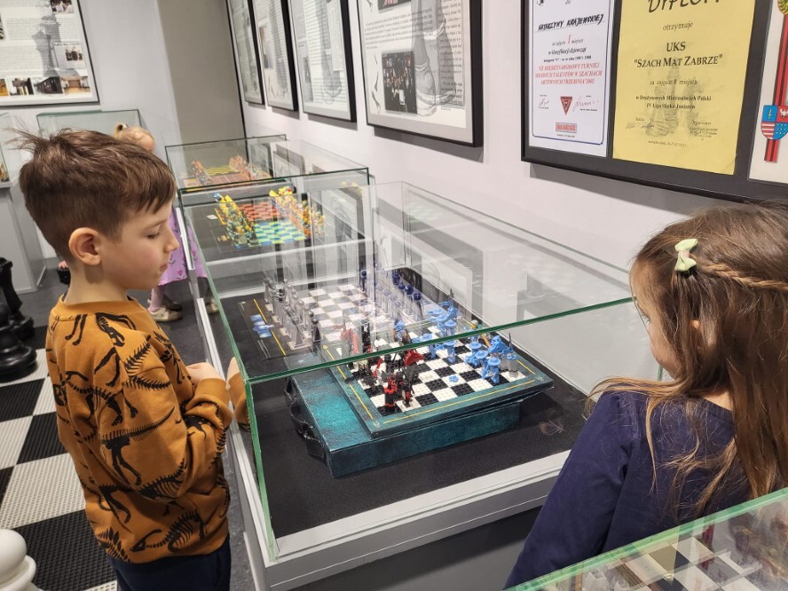 Dzieci dowiedziały się jaka jest historia zabrzańskich klubów szachowych, a w międzyczasie podziwiały eksponaty między innymi z kolekcji Kreatywne Szachy.