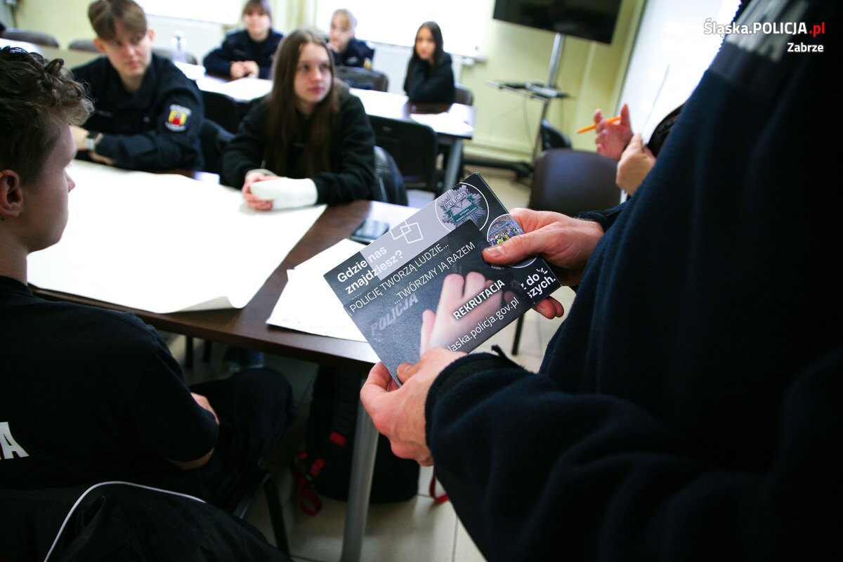 W poniedziałek zabrzańscy Policjanci spotkali się z klasami policyjnymi Zespołu Szkół Ekonomiczno-Usługowych w Zabrzu. Wizyta młodzieży zorganizowana została w ramach zajęć szkolnych, których głównym tematem było zapoznanie uczniów z jednostkami broni palnej, jakich używają Policjanci. Zajęcia zorganizowane przez zabrzańskich stróżów prawa wpisały się też w kampanię "Policję tworzą ludzie... Twórzmy ją razem".