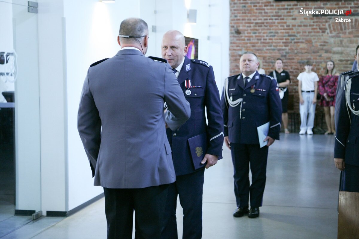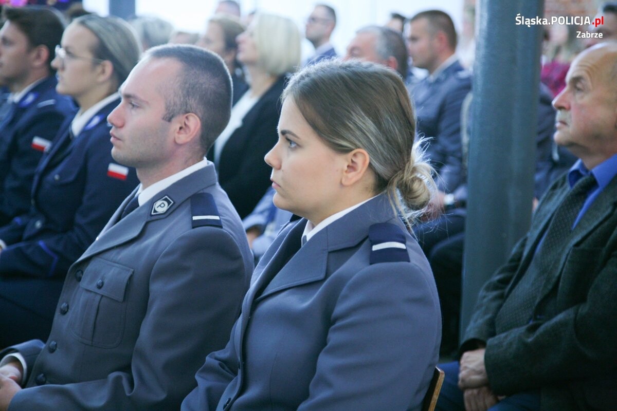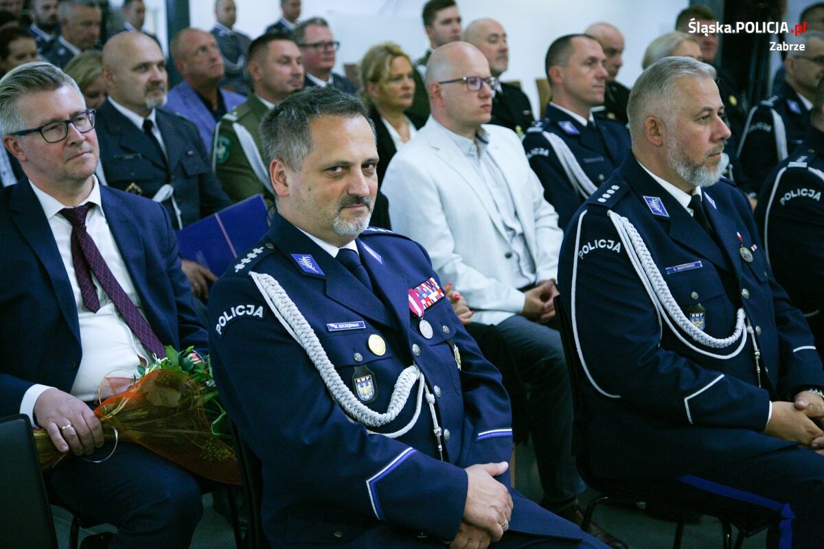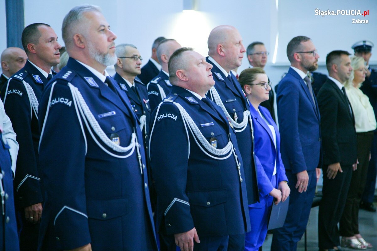 Następnie policjantom oraz pracownikom policji, którzy osiągnęli w ostatnim półroczu najlepsze wyniki, Prezydent Miasta Zabrze wręczyła wyróżnienia oraz nagrody. Kolejnym punktem uroczystości było wystąpienie Przewodniczący Zarządu Wojewódzkiego NSZZP woj. śląskiego asp. szt. Michał Szczęśniak i wręczenie przyznanych na wniosek Zarządu Terenowego NSZZP Zabrze okolicznościowych medali.