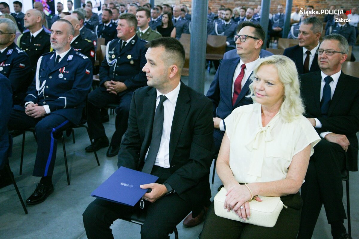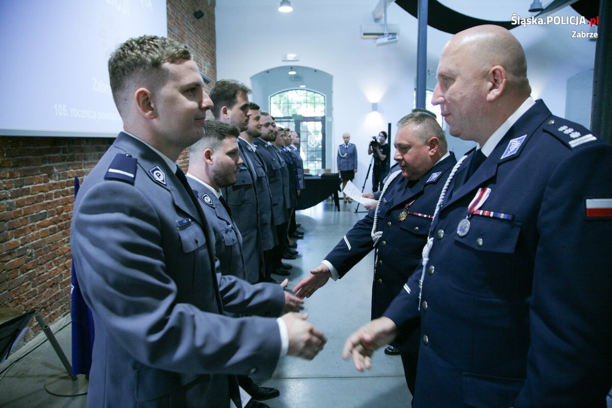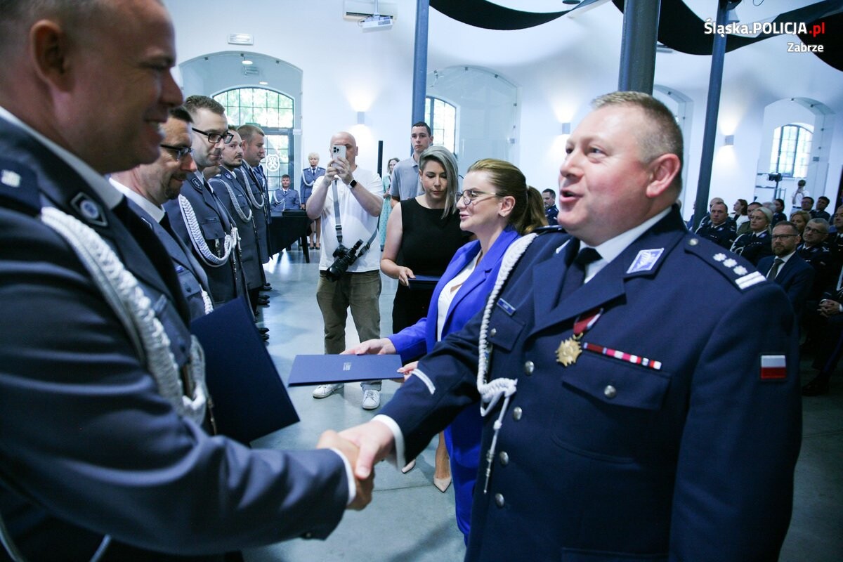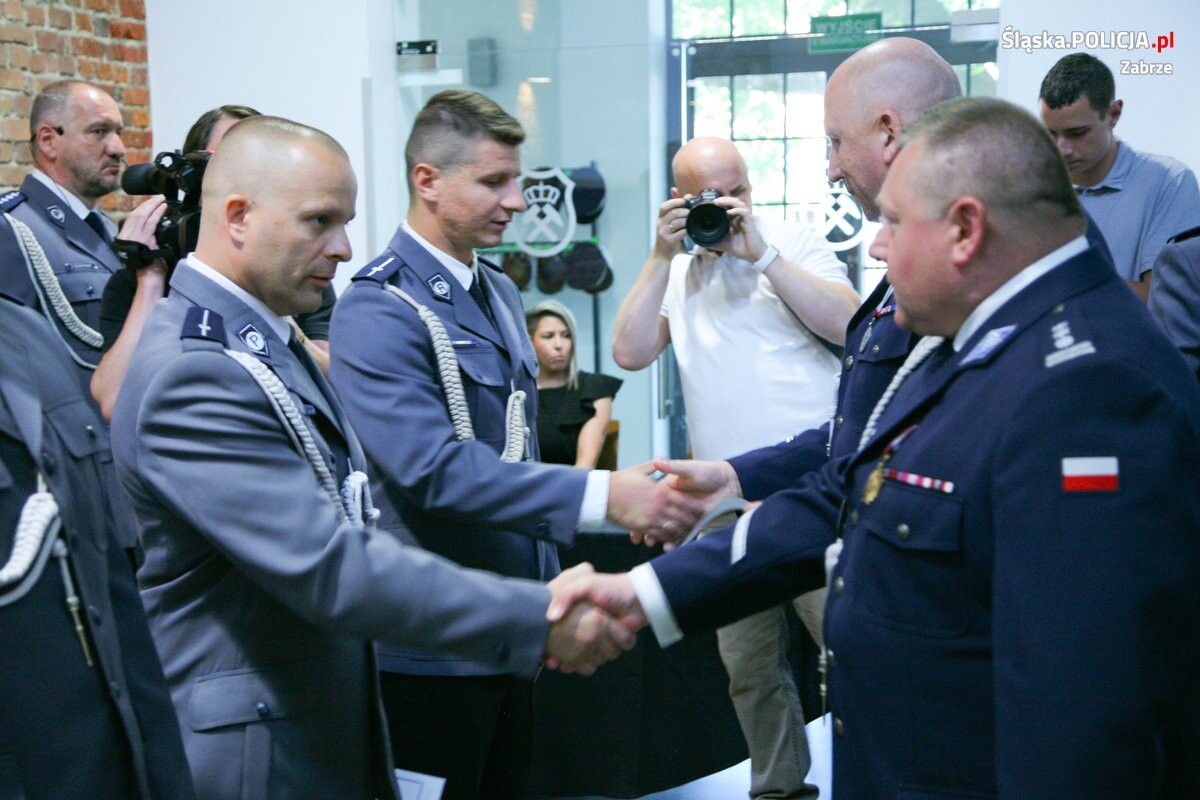 Następnie policjantom oraz pracownikom policji, którzy osiągnęli w ostatnim półroczu najlepsze wyniki, Prezydent Miasta Zabrze wręczyła wyróżnienia oraz nagrody. Kolejnym punktem uroczystości było wystąpienie Przewodniczący Zarządu Wojewódzkiego NSZZP woj. śląskiego asp. szt. Michał Szczęśniak i wręczenie przyznanych na wniosek Zarządu Terenowego NSZZP Zabrze okolicznościowych medali.