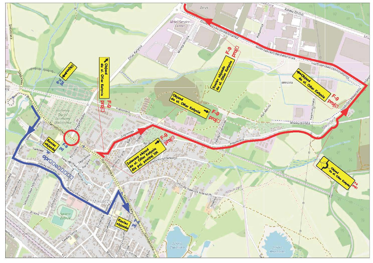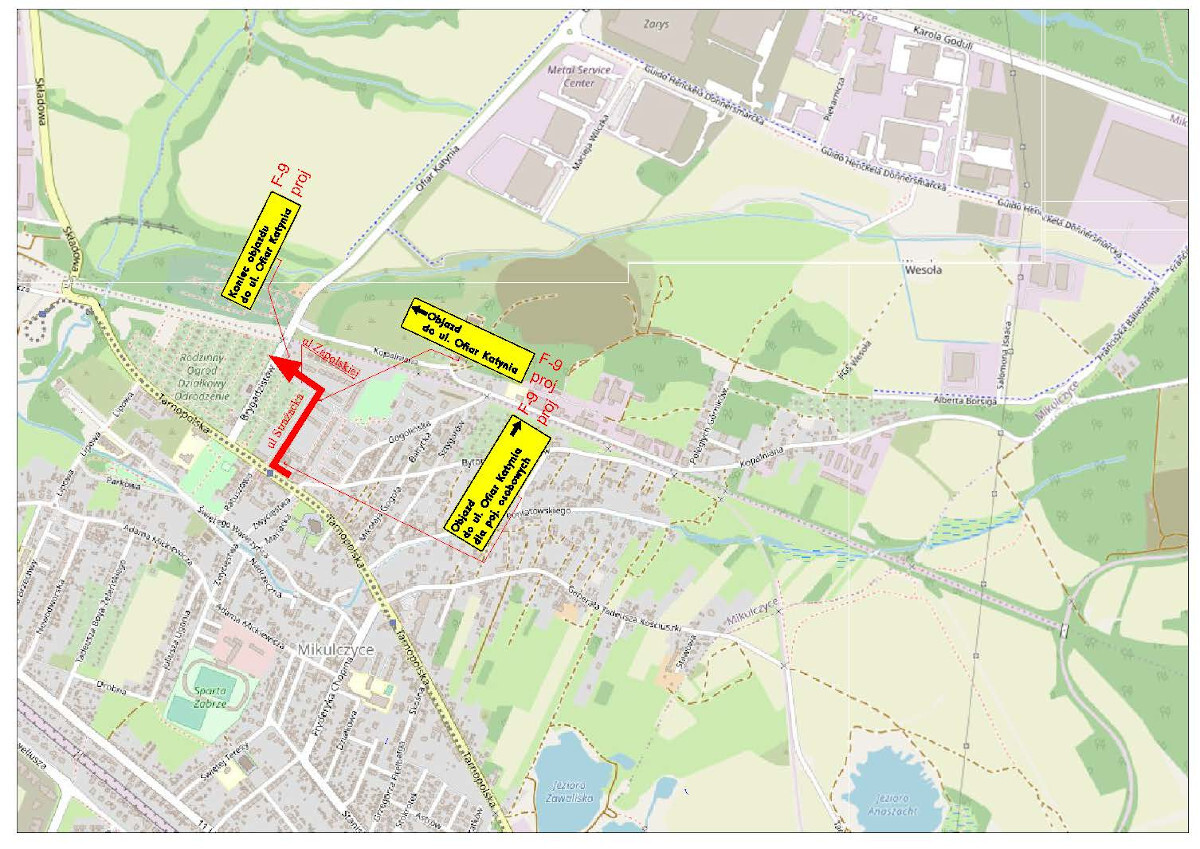 Jednocześnie informujemy, że na czas prowadzonych robót wyznaczone zostały następujące zalecane objazdy: