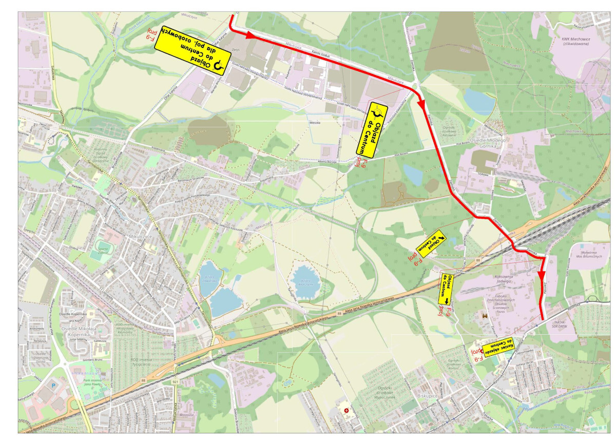 - Z kierunku od dzielnic Rokitnica i Helenka w kierunku centrum Zabrza – ulicami: Ofiar Katynia, Ziemską i Bytomską – mapa objazdu