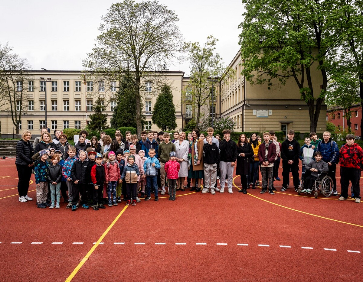 – Miasto nie mogło zrealizować tej inwestycji, ponieważ sąsiadująca ze szkołą działka nie należała do miasta. Jednak dzięki wspólnej pracy udało się ją nabyć i dziś mieszkańcy mogą cieszyć się bezpiecznym boiskiem, a „Czwórka” zyskała przestrzeń do prowadzenia zajęć na świeżym powietrzu – wyjaśniła.