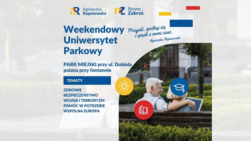 - Rok temu, gdy zainicjowaliśmy Weekendowy Uniwersytet Parkowy, przekonaliśmy się, że przestrzeń do dyskusji w Zabrzu, z zabrzanami jest znacznie większa niż ta w Parku Miejskim. I to nas ogromnie cieszy. Dlatego ponownie zapraszamy mieszkańców na zajęcia. Zależy nam na także uczestnictwie seniorów. Mamy nadzieję, że zaproponowane tematy staną się punktem wyjścia do rozmowy o potrzebach i oczkiwaniach tej grupy zabrzan - mówi Agnieszka Rupniewska, przewodnicząca Stowarzyszenia Nowe Zabrze, które wspólnie z Radą Dzielnicy Śródmieście prowadzi Weekendowy Uniersytet Parkowy.