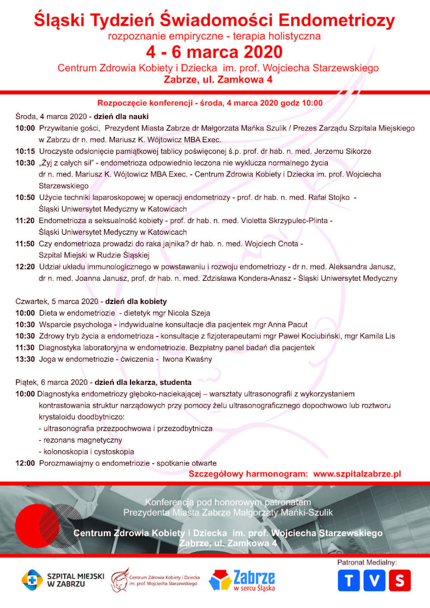 W marcu w placówce odbędzie się Śląski Tydzień Świadomości Endometriozy, podczas którego lekarze, fizjoterapeuci i specjaliści z innych dziedzin medycyny opowiedzą o chorobie i mośliwościach jej skutecznego leczenia. Patronat nad imprezą objęła prezydent Zabrza Małgorzata Mańka-Szulik.