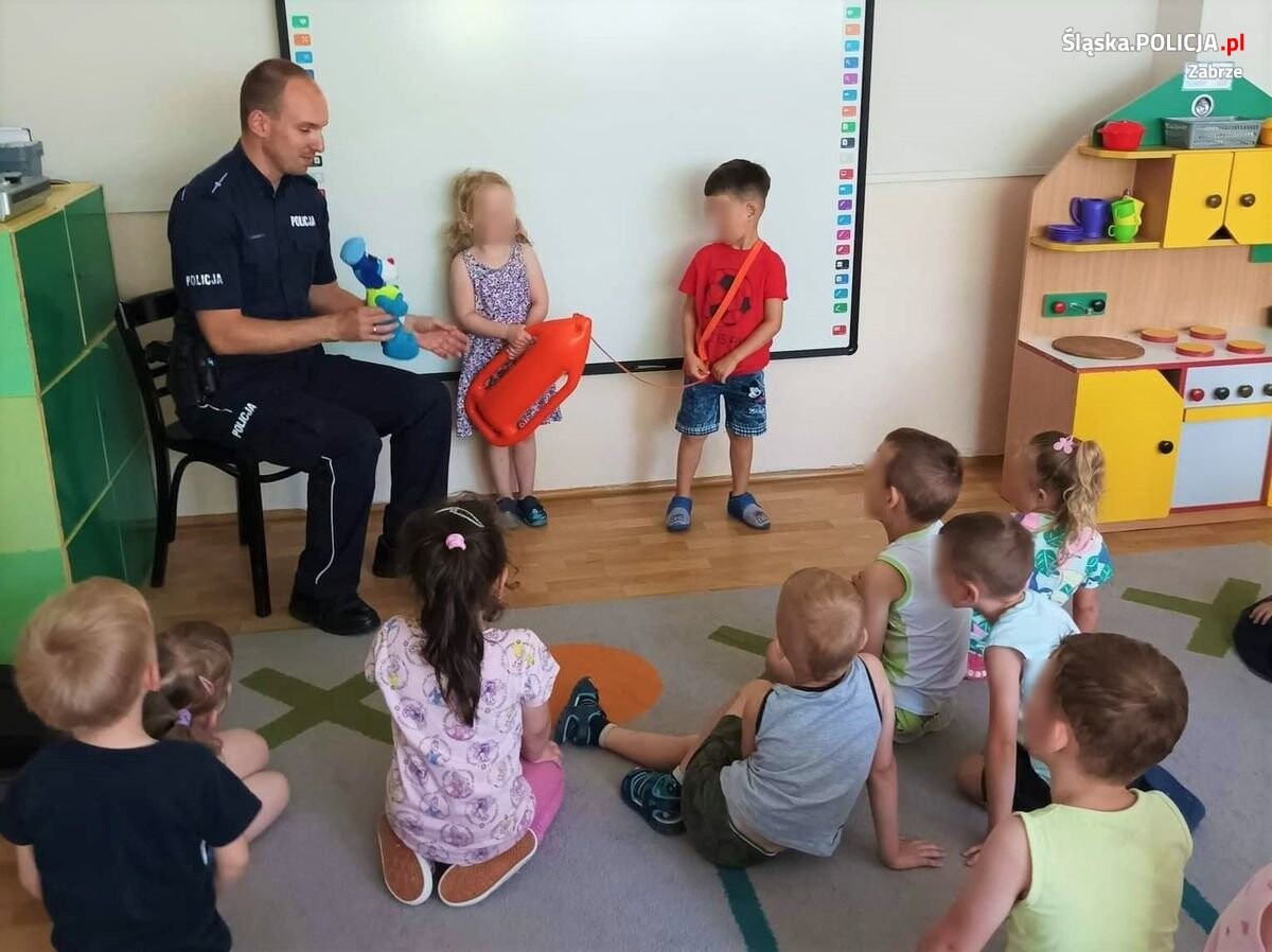 Wraz z początkiem wakacji ruszają działania "Bezpieczne Wakacje". Policjanci zajmujący się na co dzień profilaktyką prowadzą z dziećmi pogadanki na temat bezpieczeństwa podczas wakacji. W miniony piątek odwiedzili przedszkolaków z Przedszkola numer 49 w Zabrzu. W trakcie prelekcji mundurowy przekazał zasady bezpiecznego wypoczynku oraz omówił sposoby unikania zagrożeń. Informował również jak radzić sobie w niebezpiecznych sytuacjach. Przez całe wakacje prowadzone będą kolejne prelekcje między innymi dla dzieci, które będą uczestniczyć w półkoloniach organizowanych w Zabrzu.