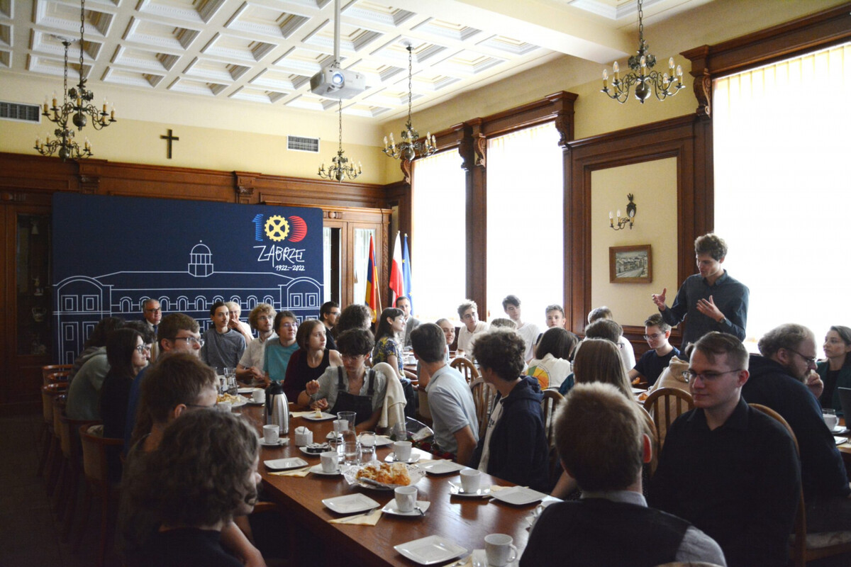 Trwa dziewiętnasta edycja Wakacyjnych Warsztatów Wielodyscyplinarnych. Od 24 lipca gościmy w naszym mieście młodych pasjonatów nauk ścisłych z całej Polski, którzy uczestniczą w zajęciach z informatyki, matematyki, fizyki, biologii, a także innych dziedzin. Wydarzenie to odbywa się w Zabrzu już po raz piąty. Wczoraj młodzież spotkała się w sali historycznej zabrzańskiego Ratusza z prezydent Zabrza Małgorzatą Mańką-Szulik oraz zastępcą prezydenta Krzysztofem Lewandowskim.