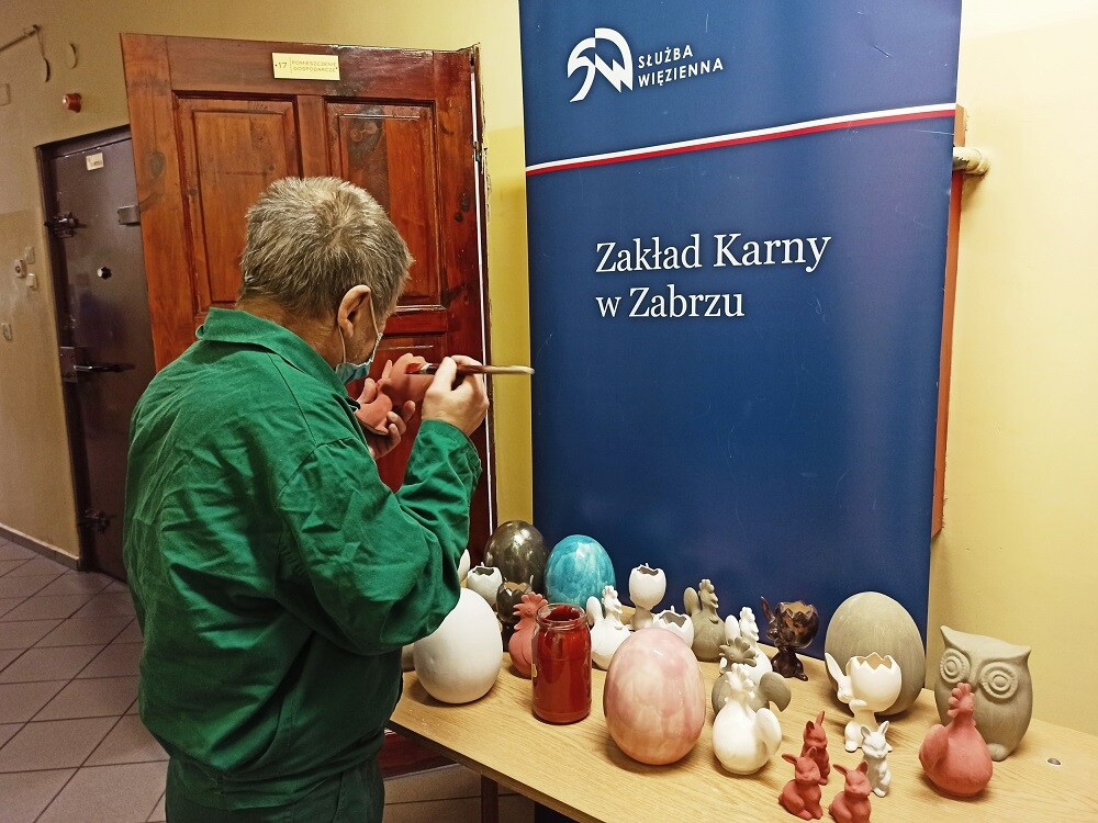 Ozdoby ceramiczne dla podopiecznych hospicjum w Pyskowicach wykonali pod opieką wychowawców skazani seniorzy podczas zajęć programu readaptacji społecznej. Dla osadzonych seniorów zajęcia ceramiczne, ugniatanie gliny, szlifowanie, malowanie to doskonałe ćwiczenia, które poprawiają ich sprawność, likwidują przykurcze oraz pozwalają odreagować stres i inne negatywne emocje. Dodatkowo osadzeni mogą podnieść poczucie własnej wartość, poczuć się potrzebni i zrobić coś dobrego dla innych.