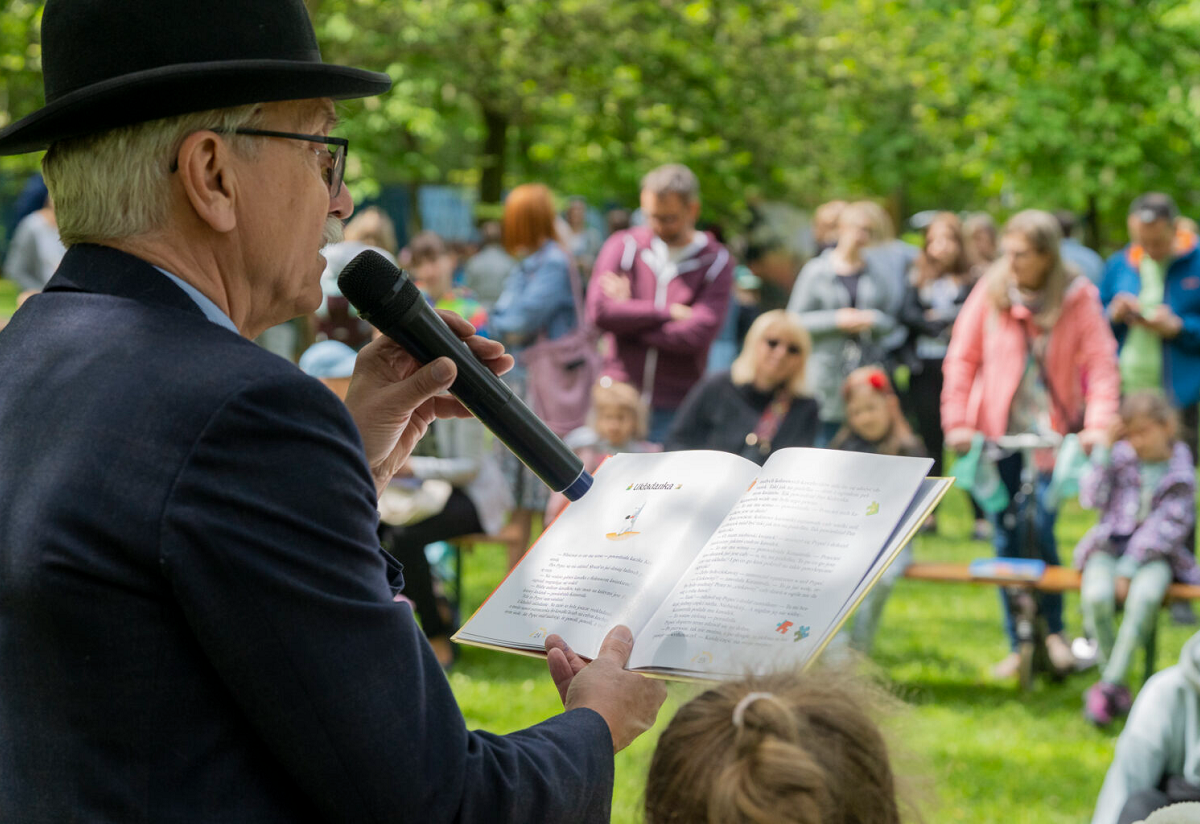 Na polanie przywitana została Eliza Piotrowska, autorka serii książek o cioci Jadzi. Następnie przyszedł czas na spotkanie z Wojciechem Widłakiem, autorem książek o przygodach Pana Kuleczki oraz „Krasnala w czerwonej = czapce” – książki, którą znajdziemy w tegorocznej edycji wyprawek czytelniczych dla przedszkolaków w ramach akcji „Mała książka – wielki człowiek”.
