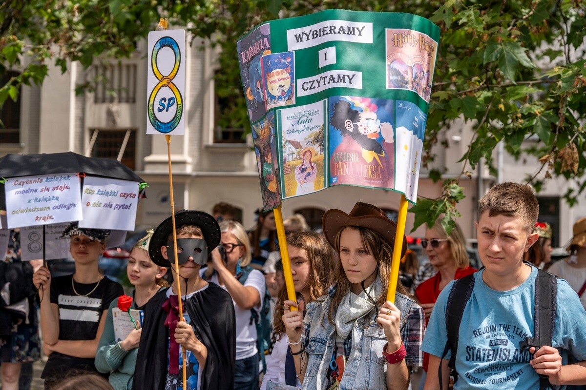 O godz. 12.15 z placu Wolności ruszył barwny korowód, który dotarł na plac Teatralny. Tam zaprezentowano szkoły biorące udział w wydarzeniu. Następnie odbył się happening teatralny pn. „Śmiechoterapia”. Impreza czytelnicza zakończyła się rozdaniem nagród.