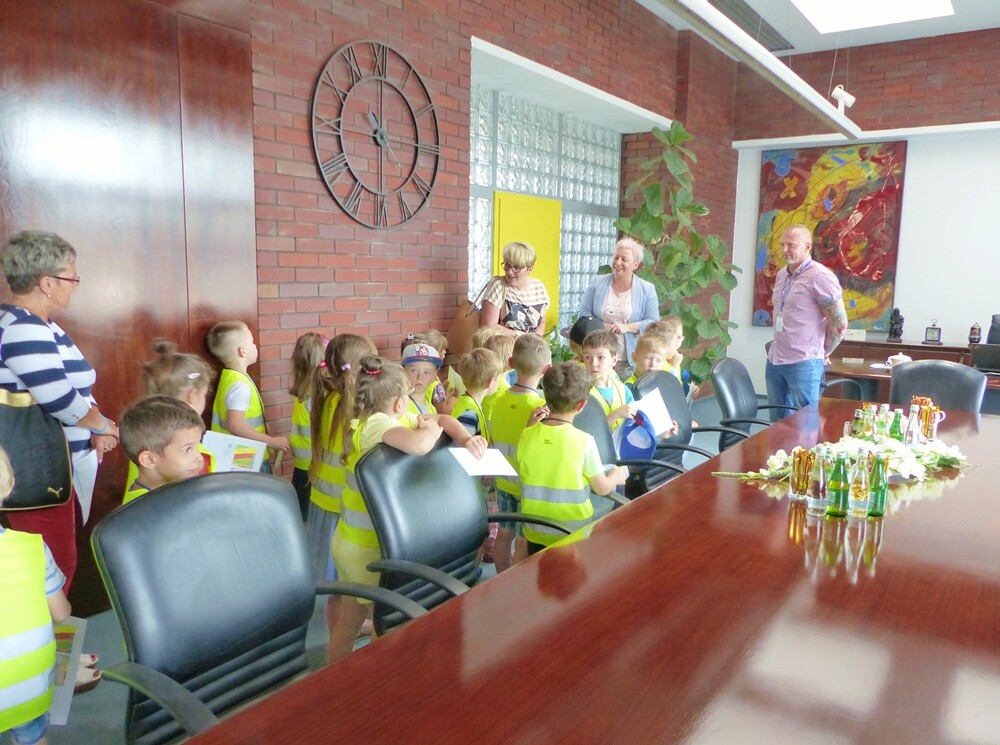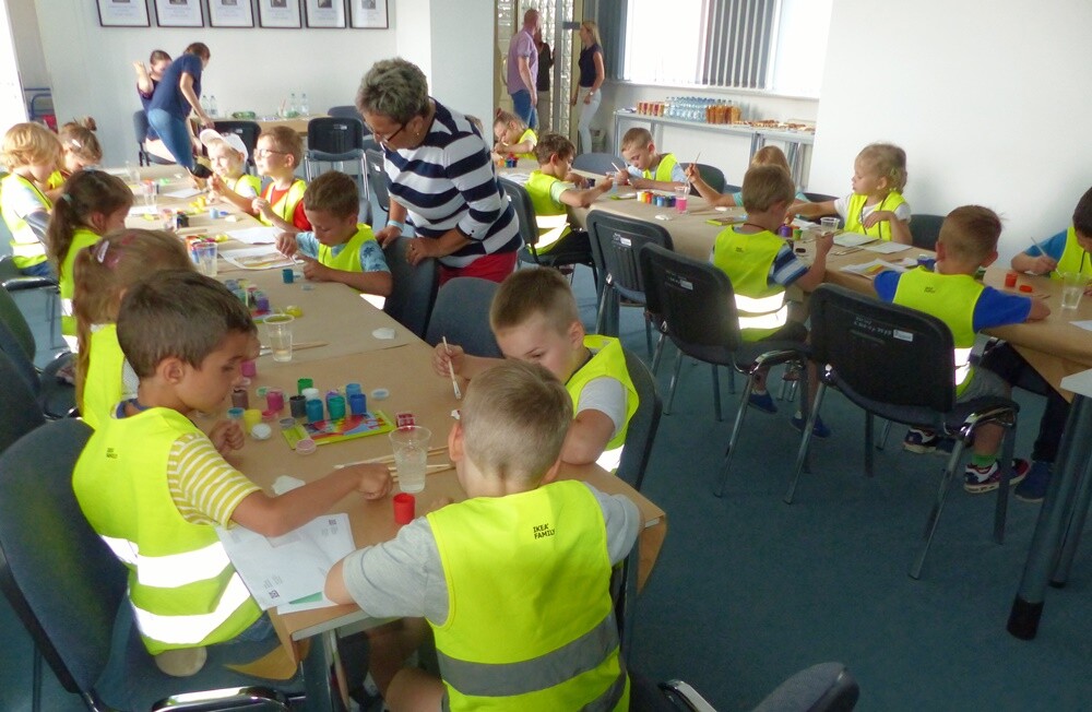 Końcowym etapem wycieczki po siedzibie ZUS były odwiedziny w gabinecie dyrektora Oddziału. Ewa Brożek, dyrektor zabrzańskiego ZUS, na pytania dzieci czym zajmuje się dyrektor ZUS króciutko opowiedziała o swojej pracy. Kilku ochotników zasiadło za biurkiem pani dyrektor, pokręciło się na fotelu i wydało „konkretne polecenia”, ale na tym koniec. Jednak zabawa i obowiązki przedszkolaka wygrały w konkurencji z byciem dyrektorem. Stąd też dzieci pożegnały się grzecznie, by udać się do sali konferencyjnej w celu naradzenia się co robić dalej. O dziwo, zza drzwi nie dobiegały odgłosy poważnych dyskusji, jak to zazwyczaj jest, ale smerfne hity i poczęstunek. Dzięki smakołykom maluchy nabrały sił do dalszej zabawy. Farby i kredki poszły w ruch! Było malowanie gipsowych odlewów: rybek, słoni, kwiatków, motyli, kolorowanie obrazków i dekorowanie logo ZUS. Dzieci układały również puzzle przedstawiające w wesoły sposób tematykę ubezpieczeń społecznych oraz rozwiązywały rebusy i łamigłówki na podstawie informacji otrzymanych w trakcie wizyty w ZUS. Dodatkową atrakcją było malowanie twarzy przez animatorki z Centrum Zabaw „Akuku” w Zabrzu.