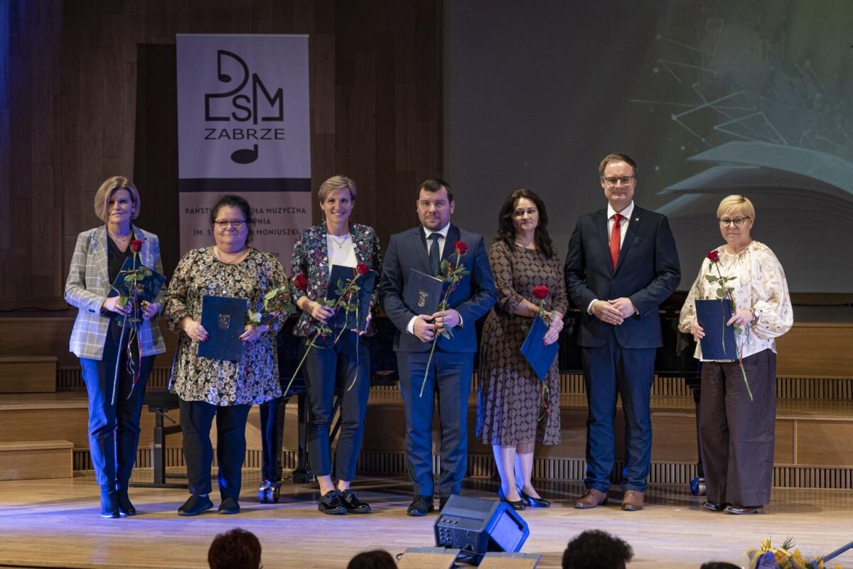13 października 2025 roku w Państwowej Szkole Muzycznej im. Stanisława Moniuszki odbyły się miejskie obchody Dnia Edukacji Narodowej. To szczególne wydarzenie było okazją do wyróżnienia nauczycieli, dyrektorów i pracowników oświaty za ich pasję, zaangażowanie oraz wkład w rozwój edukacji w Zabrzu. W trakcie uroczystości wręczono Nagrody Prezydenta Miasta Zabrze oraz wyróżnienia dla nauczycieli odznaczonych Medalem Komisji Edukacji Narodowej i Nagrodą Śląskiego Kuratora Oświaty. Prezydent Kamil Żbikowski złożył wszystkim nauczycielom serdeczne podziękowania, podkreślając ich nieoceniony wkład w kształtowanie młodych ludzi. Wydarzenie miało również wyjątkowy charakter artystyczny – uczniowie Państwowej Szkoły Muzycznej zaprezentowali występ, który nadał uroczystości wspaniałą atmosferę i podkreślił rangę obchodów.