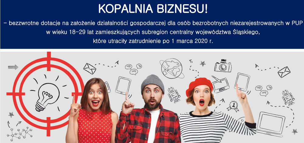 Pandemia COVID-19 i idące za tym zamrożenie gospodarki, m.in. w branży hotelarskiej, turystycznej, czy też gastronomicznej, spowodowała liczne zwolnienia pracowników zarówno tych etatowych, jak i pracujących w ramach umów cywilnoprawnych. W szczególności zwolnienia dotknęły młodych pracowników, najmniej doświadczonych i z najmniejszą perspektywą na znalezienie wysokiej jakości zatrudnienia. Dlatego też Śląski Regionalny Fundusz Poręczeniowy Sp. z o.o. z Katowic wraz z Partnerem Zachodniopomorską Grupą Doradczą Sp. z o.o. ze Szczecina wyszli naprzeciw oczekiwaniom osób młodych z projektem pt. „KOPALNIA BIZNESU! - bezzwrotne dotacje na założenie działalności gospodarczej dla osób bezrobotnych niezarejestrowanych w PUP w wieku 18-29 lat zamieszkujących subregion centralny województwa Śląskiego, które utraciły zatrudnienie po 1 marca 2020 r.” realizowanym z Europejskiego Funduszu Społecznego w ramach Programu Operacyjnego Wiedza Edukacja Rozwój 2014-2020. Projekt daje szansę osobom młodym na założenie własnej działalności bez konieczności posiadania własnych środków finansowych.