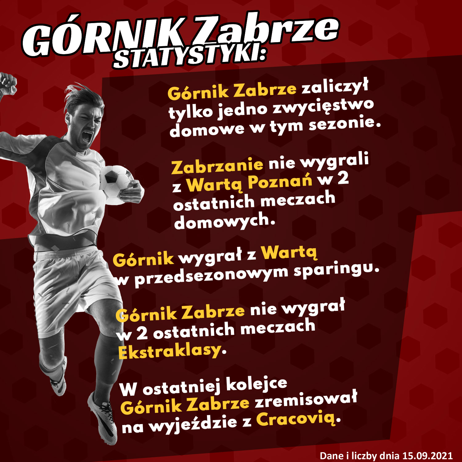 Patrząc na statystyki obu zespołów, można pokusić się o stwierdzenie, że przed nami spotkanie 2 drużyn, które w ostatnim czasie nie potrafią wygrywać. Górnik Zabrze przystąpi do tej rywalizacji po serii 2 meczów bez zwycięstwa, natomiast Warta Poznań ma na koncie 4 kolejne starcia bez wygranej. Jeśli dwa zespoły mają problemy z wygrywaniem, to remis wydaje się rozsądnym wynikiem. Są na to szanse, jednak już same przeliczniki wskazują, że jest to ryzykowna opcja. Ostatni raz remisem w rywalizacji tych drużyn zakończyło się spotkanie w 2013 roku.